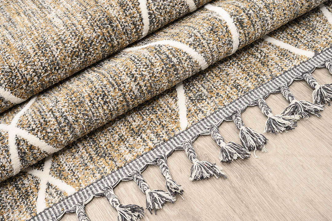 Λεπτομέρειες όπως το χειροποίητο δετό κρόσσι και το ανάγλυφο πέλος του χαλιού