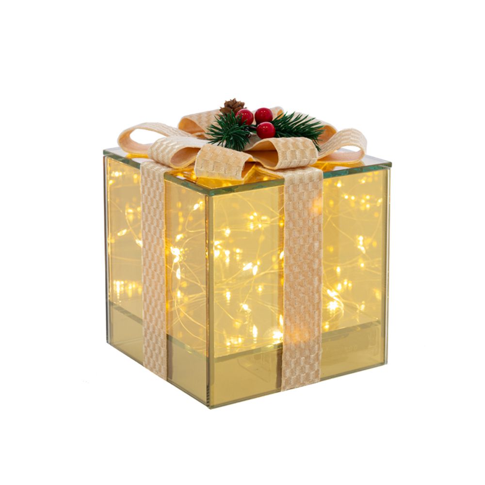 ΧΡΥΣΟ ΓΥΑΛΙΝΟ ΚΟΥΤΙ ΣΕ ΣΧΗΜΑ ΔΩΡΟΥ ΜΕ ΚΟΡΔΕΛΑ ΚΑΙ LED ΦΩΣ ΜΠΑΤΑΡΙΑΣ 12Χ12Χ12ΕΚ