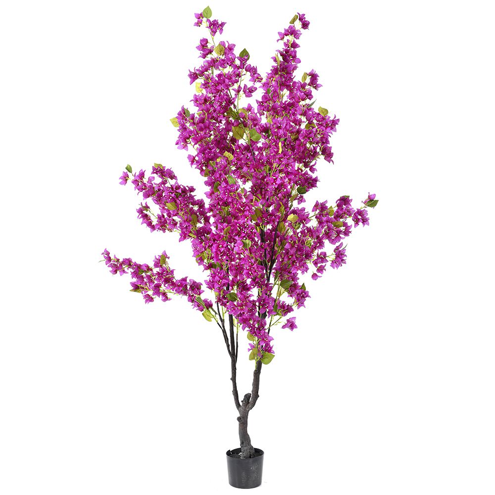 Τεχνητό φυτό βουκαμβίλια ύψους 210εκ. σε μωβ χρώμα. Είναι τοποθετημένο σε μαύρη πλαστική γλάστρα.