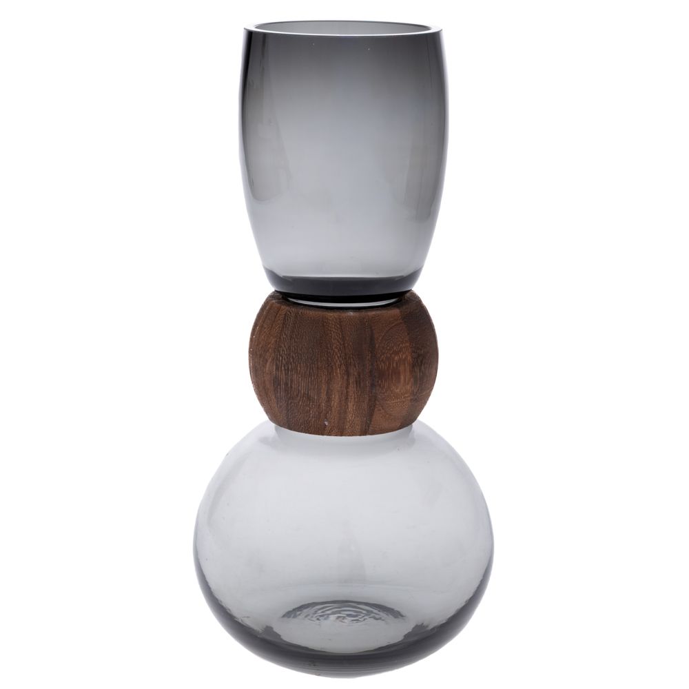 ΓΚΡΙ ΓΥΑΛΙΝΟ ΒΑΖΟ ΜΕ ΞΥΛΙΝΗ ΛΕΠΤΟΜΕΡΕΙΑ 16Χ33ΕΚ