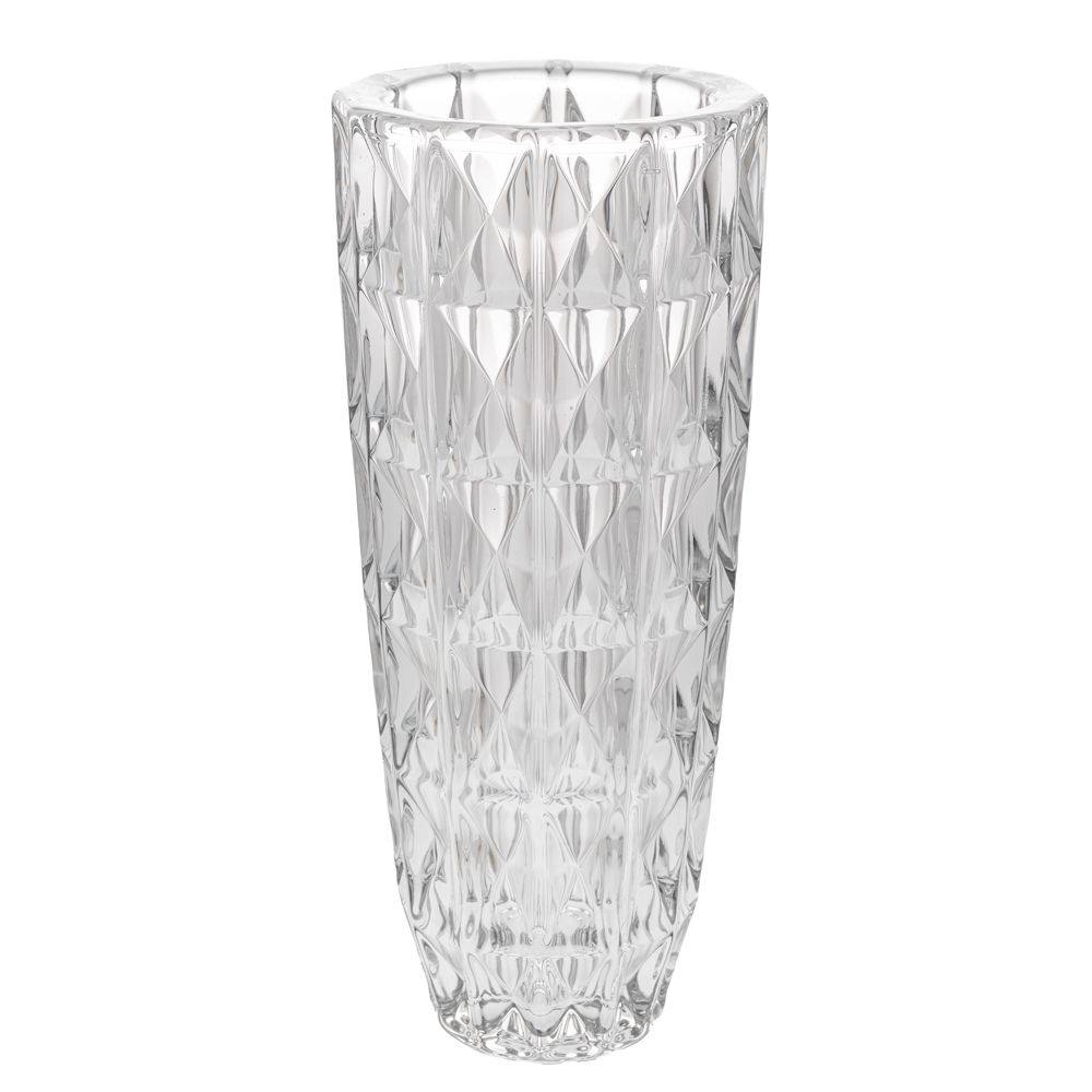 Βάζο γυάλινο διάφανο 14Χ32 εκ με ανάγλυφο μοντέρνο σχέδιο.