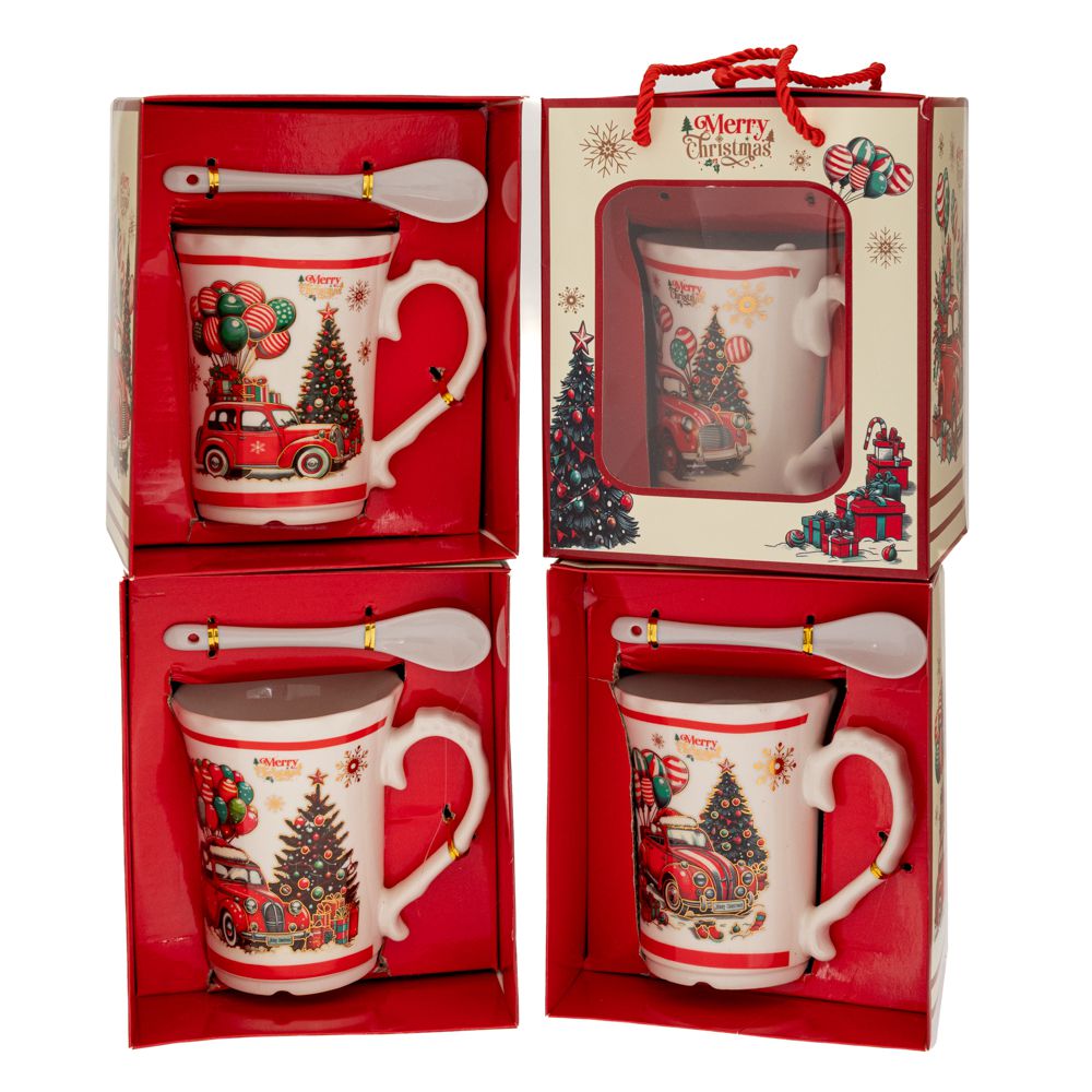 ΚΕΡΑΜΙΚΗ ΚΟΥΠΑ ΜΕ ΧΡΙΣΤΟΥΕΓΝΝΙΑΤΙΚΑ ΣΤΟΛΙΣΜΕΝΟ ΑΥΤΟΚΙΝΗΤΟ ΣΕ ΚΟΥΤΙ ΔΩΡΟΥ 4 ΣΧΕΔΙΑ 300ml