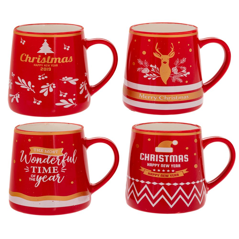 ΚΟΚΚΙΝΗ ΚΕΡΑΜΙΚΗ ΚΟΥΠΑ ΜΕ ΧΡΙΣΤΟΥΓΕΝΝΙΑΤΙΚΕΣ ΦΙΓΟΥΡΕΣ 4 ΣΧΕΔΙΑ 420ml (8Χ10ΕΚ)