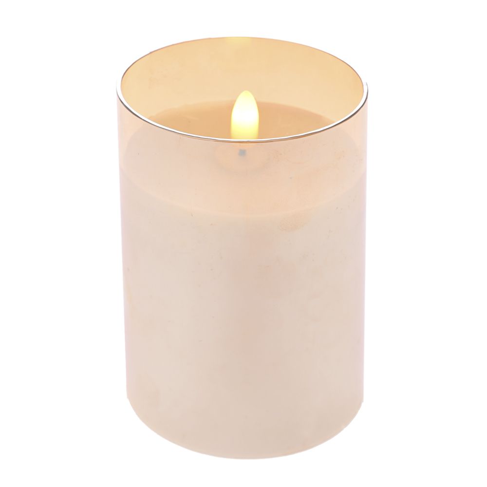 Κερί μπαταρίας με εφέ κινούμενης φλόγας σε κρεμ χρώμα μέσα σε γυάλινο μελί κηροπήγιο. Οι μπαταρίες μπαίνουν στην κάτω στην βάση και δεν περιέχονται ΑΑΑ.