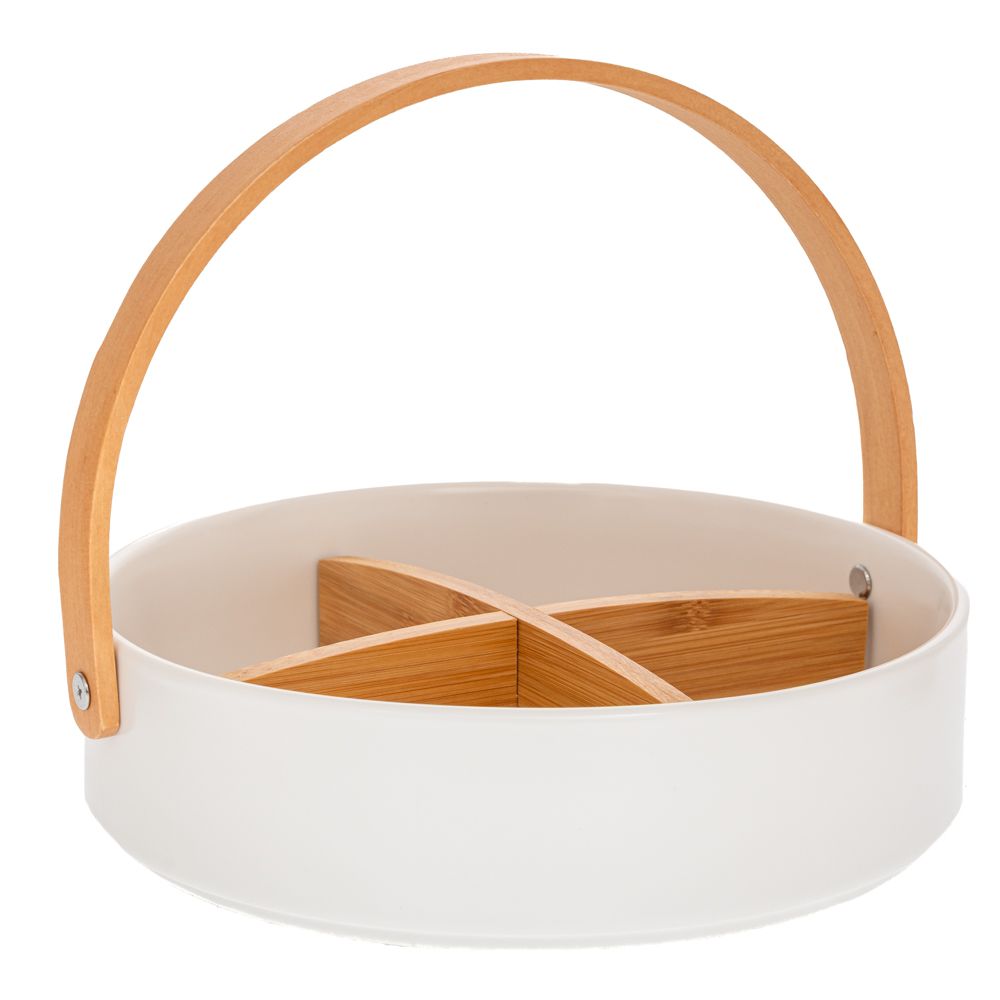 ΛΕΥΚΗ ΚΕΡΑΜΙΚΗ ΟΡΝΤΕΒΙΕΡΑ ΜΕ BAMBOO ΧΕΡΟΥΛΙ ΚΑΙ ΧΩΡΙΣΜΑΤΑ Φ22,5Χ6ΕΚ