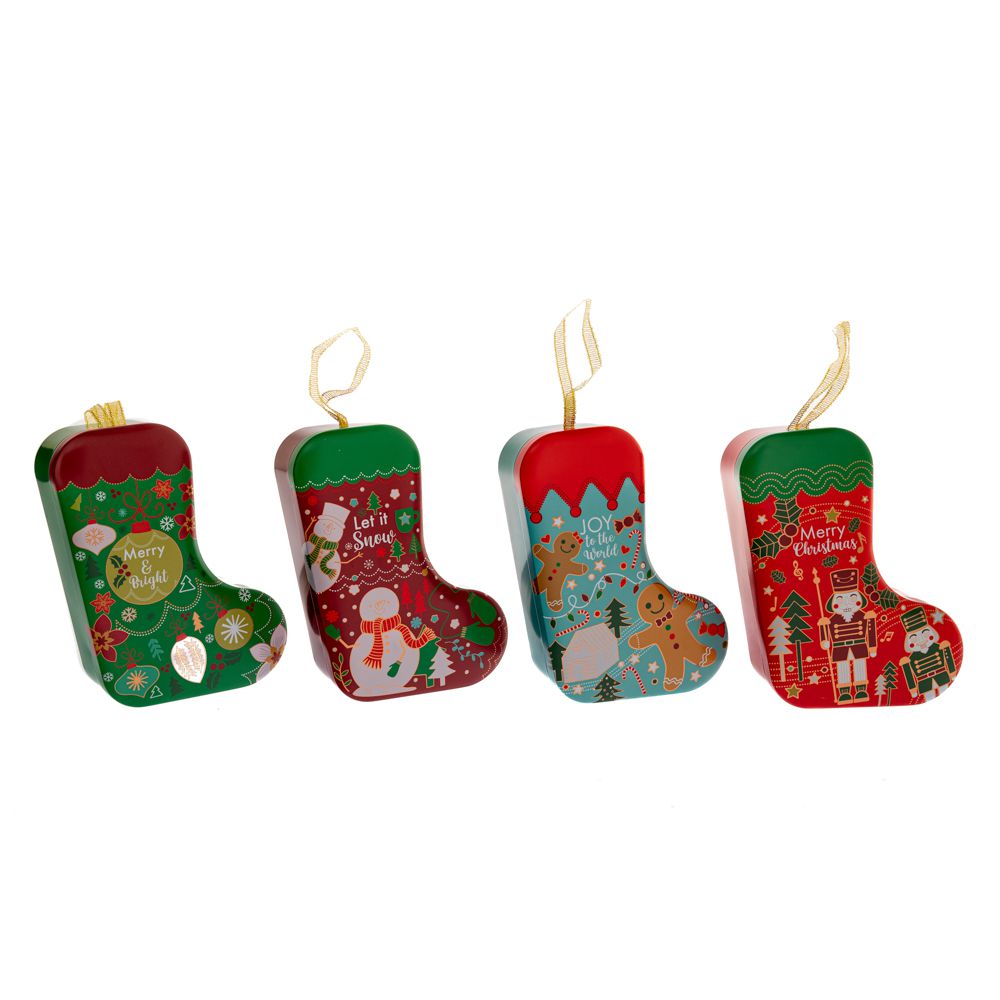 ΠΟΛΥΧΡΩΜΟ ΜΕΤΑΛΛΙΚΟ ΚΟΥΤΙ ΣΕ ΣΧΗΜΑ ΚΑΛΤΣΑΣ ΜΕ ΧΡΙΣΤΟΥΓΕΝΝΙΑΤΙΚΕΣ ΦΙΓΟΥΡΕΣ 10Χ3,5ΕΚ X14 4 ΣΧΕΔΙΑ