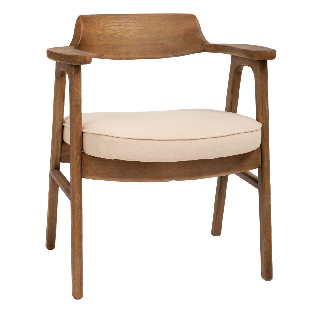 Αναδείξτε τη διακόσμηση του χώρου σας με αυτή την κομψή καρέκλα από ξύλο βελανιδιάς, που συνδυάζει τη φυσική ζεστασιά του ξύλου με τη κομψότητα του υφάσματος.