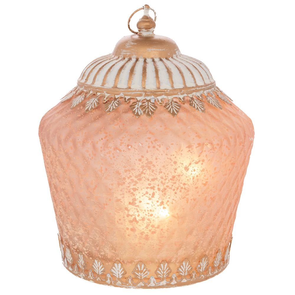 ΡΟΖ ΓΥΑΛΙΝΟ ΦΑΝΑΡΑΚΙ ΜΕ LED ΦΩΣ AND ΜΕΤΑΛΛΙΚΟ ΚΑΠΑΚΙ 15Χ15Χ19ΕΚ (ΑΑΑ 1.5V)