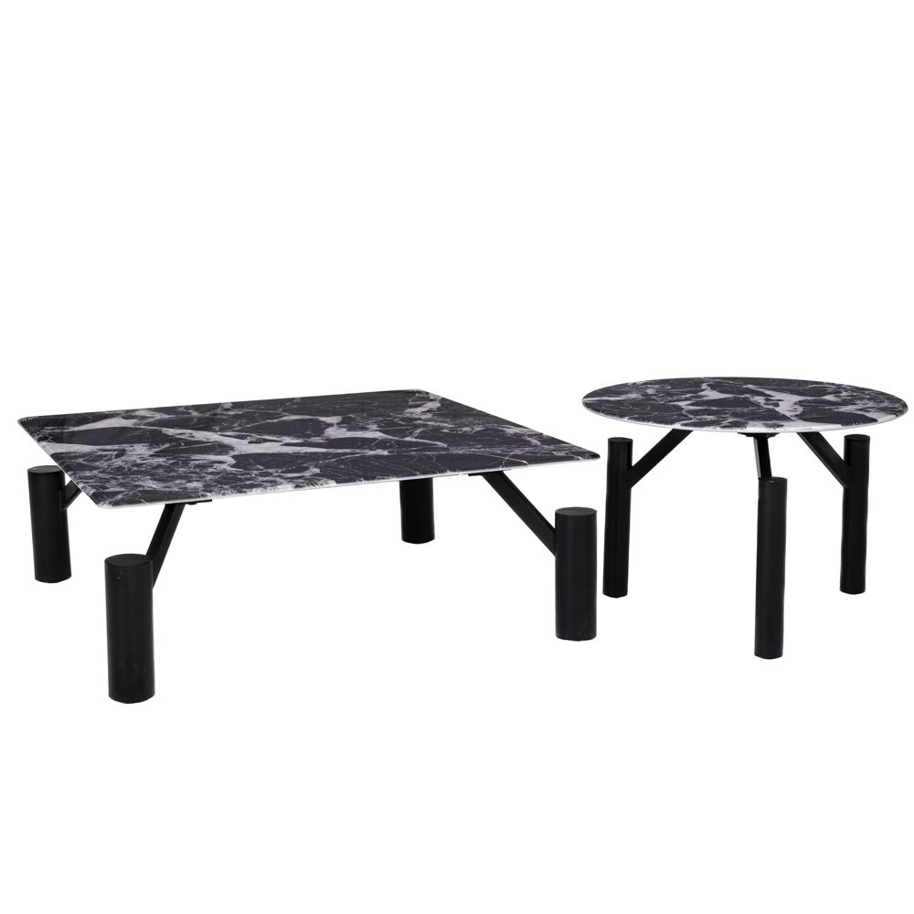 ΣΕΤ 2 ΤΡΑΠΕΖΑΚΙΑ ΜΑΥΡΑ ΜΕΤΑΛΛΙΚΑ 90Χ90Χ35 Φ60Χ42ΕΚ ΜΕ ΜΑΥΡΗ ΜΑΜΑΡΙΝΗ ΕΠΙΦΑΝΕΙΑ