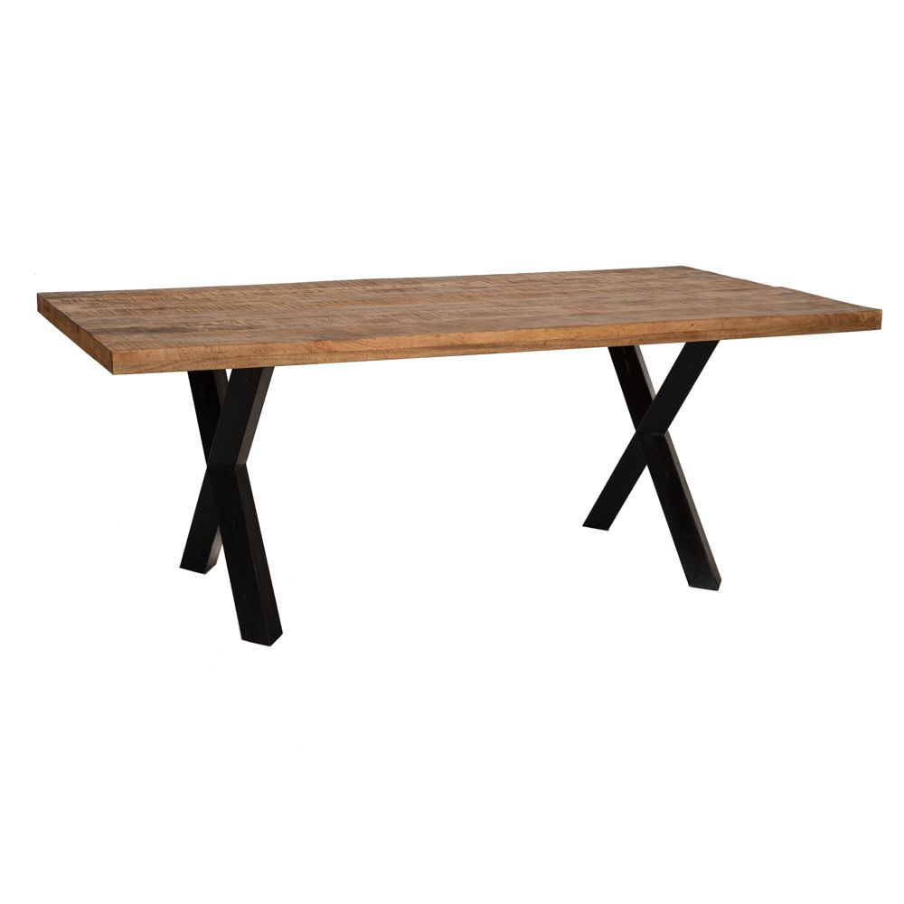 Τραπέζι τραπεζαρίας που αποτελέιται από καφέ ξύλινη επιφάνεια μασίφ και βαρέως τύπου μεταλλικά μαύρα πόδια διαστάσεων 200x100x78εκ.