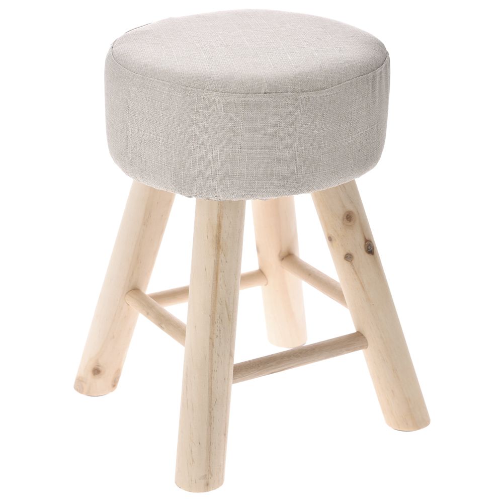 Σκαμπω σε φυσικό χρώμα ξύλου και κρεμ λινό υφασμάτινο κάθισμα.