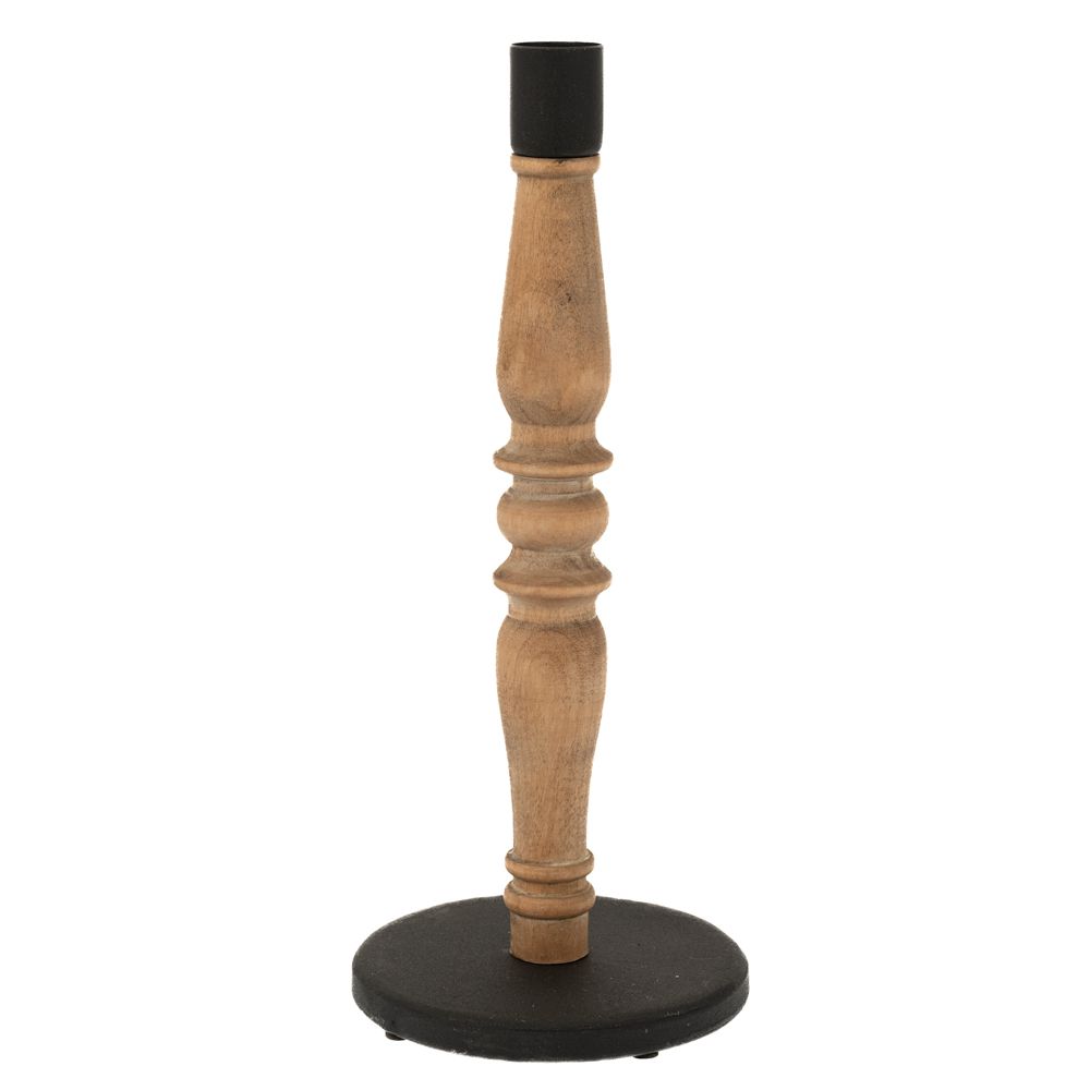 Ξύλινο παλαιωμένο δίχρωμο κηροπήγιο, σε μαύρο και φυσικό χρώμα του ξύλου.
